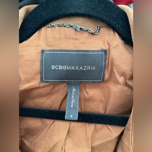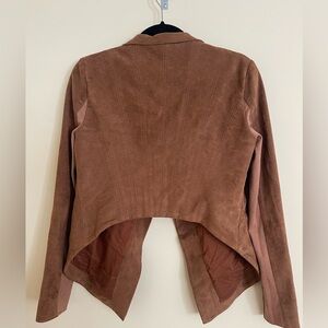 BCBG Sued Brown Waterfall Collar Draped Front Jacket Women Size S US