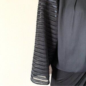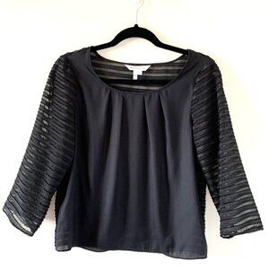 BCBG Women’s Blouse Sheer Striped Sleeve Top 3/4 Length Sleeve Black Size Small