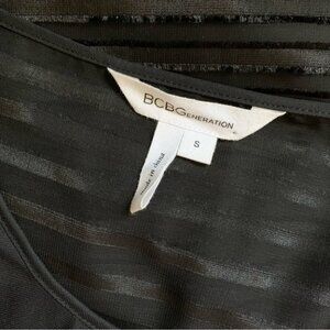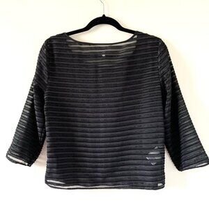 BCBGeneration Black Sheer Striped 3/4 Length Sleeves Top.