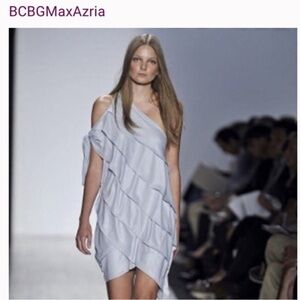 BCBGMaxAzria Runway Tiered Layered Ruffle One Shoulder Mini Dress Tie Sleeve