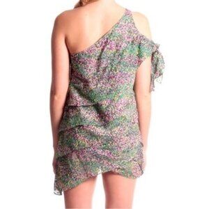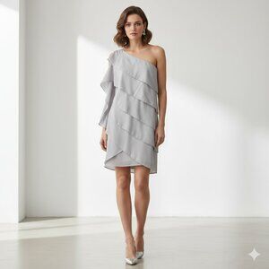 BCBGMaxAzria Runway Tiered Layered Ruffle One Shoulder Mini Dress Tie Sleeve