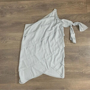 BCBG Women's Mini Dress Tiered Layered Ruffle One Shoulder Tie Sleeve Pale blue