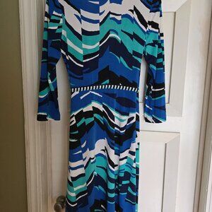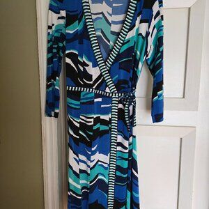 Reposhing this item I purchased from @anghel3. Loved it, but a bit snug on me. Lovely tropical/ ocean colours- blues, whites. It's a wrap dress, with 3/4 sleeves, size medium.
