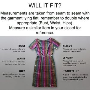 • Tag Size: 2. Approximate measurements taken lying flat: Bust: 15”/Empire Waist: 13”/Hips: 17”/Length from shoulder: 41”