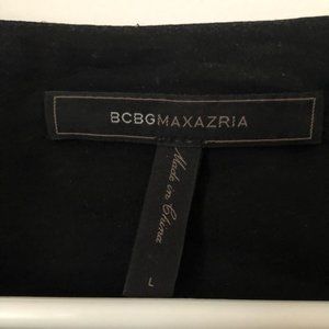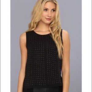 Black BCBG top with silver studs. Open back. Perfect to dress up or down. large.