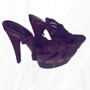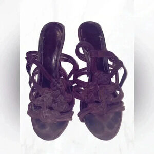 BCBG generation platform strappy leopard brown suede braided leather heel 8