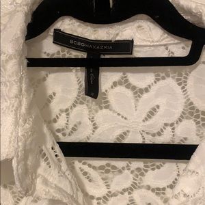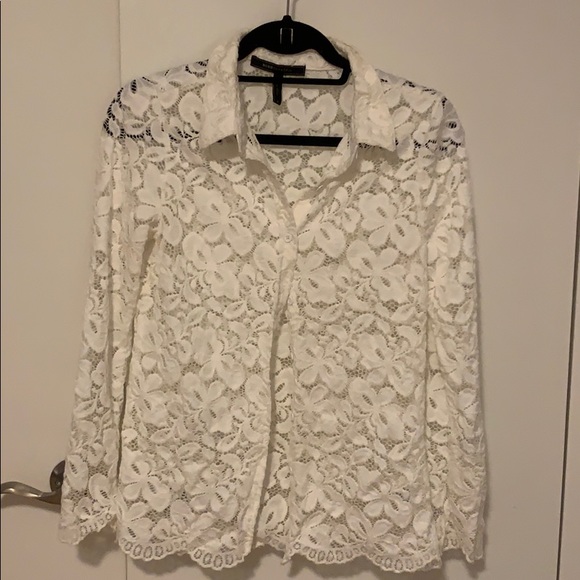 White lace BCBG blouse, great over a tank top, beautiful detailing