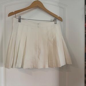 Size medium : ivory pleated mini skirt ; back zip : 15 inches long 29inch waist ... never worn with tags ; medium weight ;