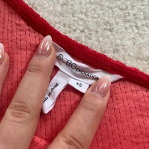 Gorgeous vibrant asymmetrical red dress from BCBG Generation with a side cut out. Size XS and has some stretch to it. Great condition, worn once. Unlined.