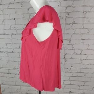 Beautiful top in hot pink with ruffle detailing front and back.