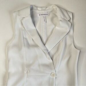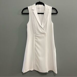 BCBGENERATION White DeepV Button Business Sleeveless Faux Wrap Mini Blazer Dress