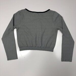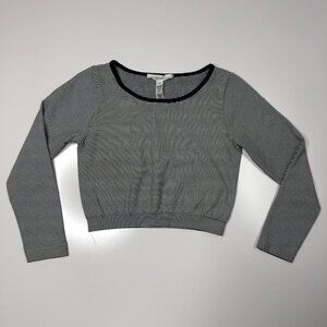 BCBGENERATION Y2K Style Black White Mirco Striped Long Sleeved Stretchy Crop Top