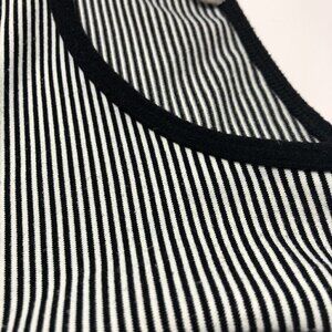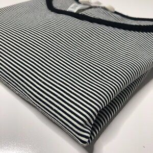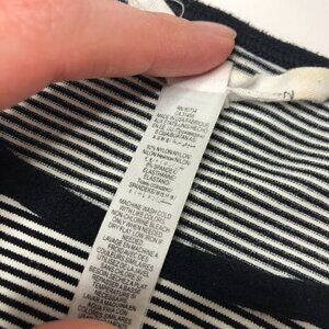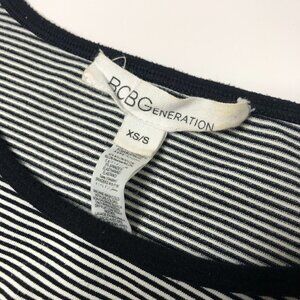 BCBGeneration thin striped black and white long sleeved crop top. It is trimmed at the neck with black trim. Super stretchy, form fitting and comfy! It’s soft to the touch. In excellent condition but with two minor flaws: the brand name tag has some slight discolouration inside and there’s very minimal pilling under the arms (see photo of me pointing to it). Please see photos for measurements and details. Women’s size XSMALL/SMALL.