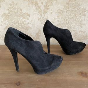 Good pre owned condition black colour suede platform heels Size 7.5