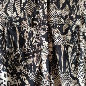 Very soft and comfortable - details on the shoulders. great buttons and material is just great to wear on its own or under a jacket/sweater, etc. 92% polyester and 8% spandex so it is stretchy. Snap on buttons