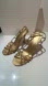 Elegant gold strappy high heels with a sleek design. Open toe - sling back. Perfect for special occasions.