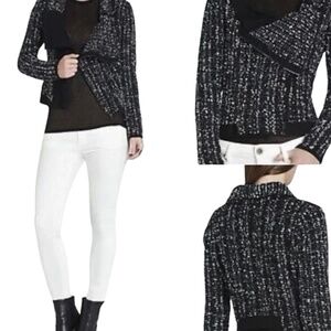 BCBGMAXAZRIA 100% Cotton Reeve Moto Cardigan Boucle Tweed Cropped Jacket Sz S