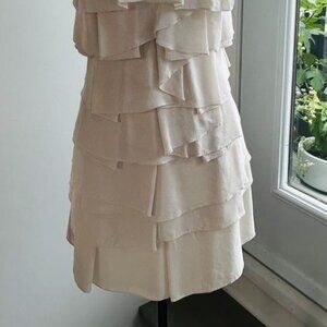 BCBGMAXAZRIA 100% Silk Ruffled Mini Dress – Ivory, Adjustable Straps, Size 6