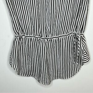 BCBGMAXAZRIA 100% Silk Striped Blouse Statement Sleeve Drop Waist Tie V Neck