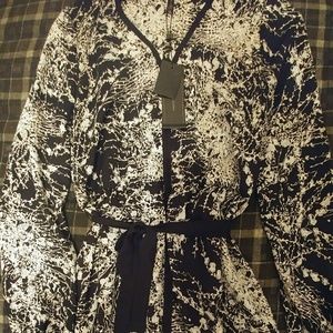 New with tags and extra buttons for the sleeves. Extremely comfortable work dress that you can wear straight to a night out. From the waist down, the dress has a sewn in liner, which is great because it doesn't move when you're walking. You can't even feel it. Comes from a smoke and pet free home. I'm also selling this same exact dress in light blue with the flowers white. This one is black, with the same light blue flowers instead. Any questions, please feel free to ask.