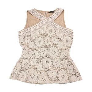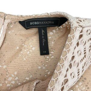BCBGMAXAZRIA Annica Crochet Lace Peplum Top Sz XS Bare Pink