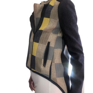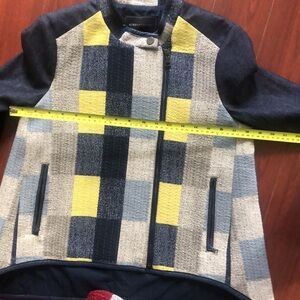 BCBGMAXAZRIA Asymmetrical Jakob Jacket Blue Yellow Patchwork Full Zip …