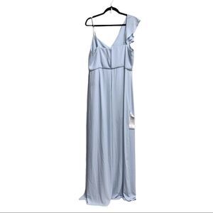 BCBGMAXAZRIA Asymmetrical Neck Ruffle Maxi Dress Blue 16