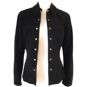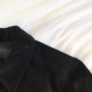 BCBGMAXAZRIA BLACK 100% DAIN SUEDE BUTTON UP COLLAR JACKET - S