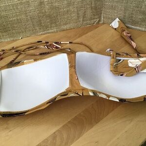 This BCBGMaxAzria Bikini top I bought last summer to wear with a skirt however it didn’t work. It is NWT and can be worn two ways refer to tag. It is size USA 8 with a lovely tropical pattern. Bundle in my closet to save on shipping.