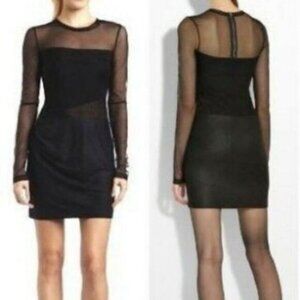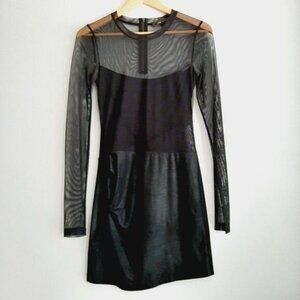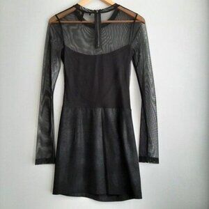 BCBGMAXAZRIA / Black Mesh Long Sleeve Fitted Short Mini Dress Sz XS