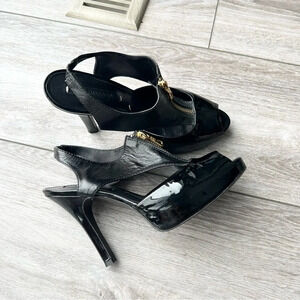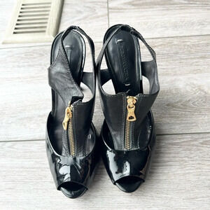 BCBGMAXAZRIA Black Patent Smooth Mixed Leather Peep Toe Pumps Full Leather