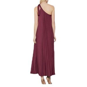 BCBGMAXAZRIA Boho Pleated Strapless Tie-Shoulder Maxi Burgundy S