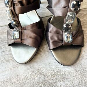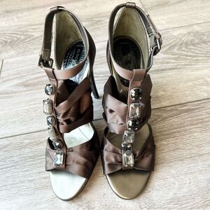 BCBGMAXAZRIA Brown Satin Jeweled Upper Strappy Sandals
