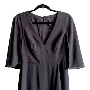 BCBGMAXAZRIA Cape Sleeve V-Neck Asymmetrical Ruffle Maxi Dress Black 6