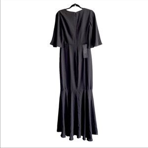 BCBGMAXAZRIA Cape Sleeve V-Neck Asymmetrical Ruffle Maxi Dress Gown Black 10