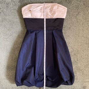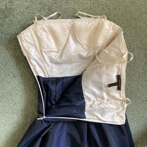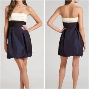 BCBGMAXAZRIA cream, black and navy blue strapless dress.