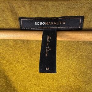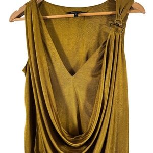 BCBGMAXAZRIA Drape Front Sleeveless Dress with Gold Hardware in Gold Ochre - M