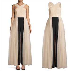 BCBGMAXAZRIA Eve Overlay Walk-through Jumpsuit Evening Gown Almond Blossom XS