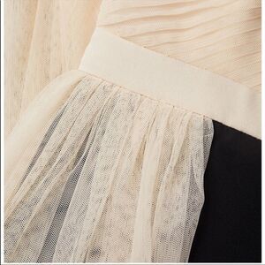 Two-tone jumpsuit is just as elegant as an evening gown. Truly the best of both worlds, the Eve jumpsuit features a tulle overlay at the surplice bodice that gives way to a dramatic, free-flowing skirt-style silhouette.