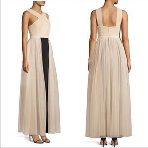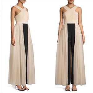 BCBGMAXAZRIA Eve Overlay Walk-through Jumpsuit Evening Gown Almond Blossom XS