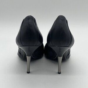 BCBGMAXAZRIA Leather Pleated Kitten Heels Black Size 7.5B Stiletto Pumps