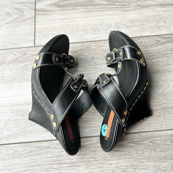 BCBGMAXAZRIA Ma-dara Black Buffalo Wedge Sandals All Leather