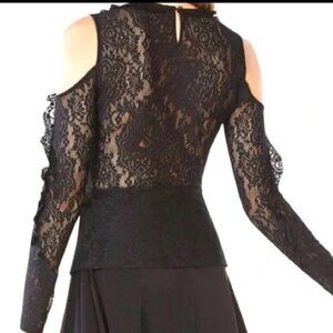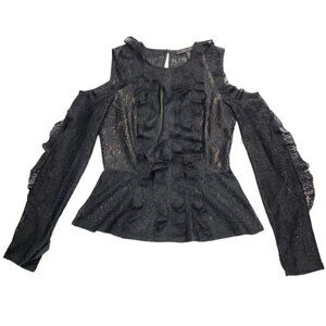 BCBGMAXAZRIA Maddy Cold Shoulder Lace Ruffle Peplum Top Sz Small
