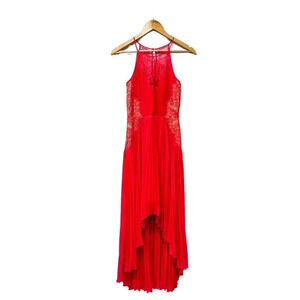 BCBGMAXAZRIA Maryella Coral Pleated Lace High-Low Dress | Size 0 *