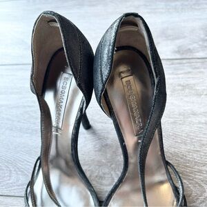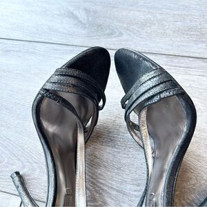 BCBGMAXAZRIA Metallic Black All Leather Heeled Sandals