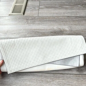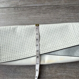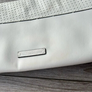 BCBGMAXAZRIA Metallic Laser Cut Leather Criss Cross Flap Clutch Evening Handbag