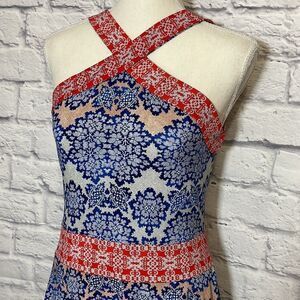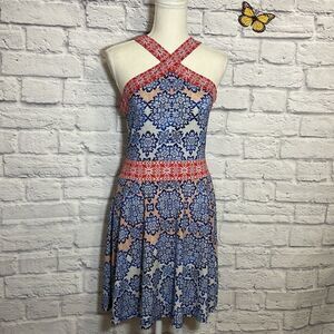 BCBGMAXAZRIA Nadia Multicolor Criss-Cross Fit and Flare Dress Size Small