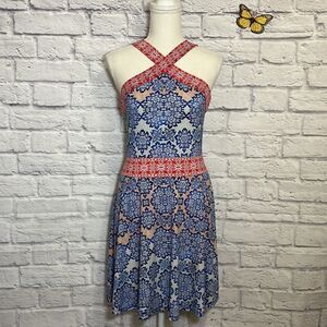 BCBGMAXAZRIA Nadia Multicolor Criss-Cross Fit and Flare Dress Size Small