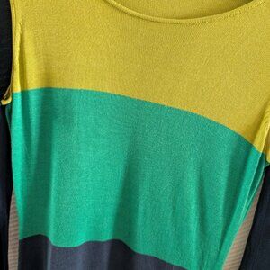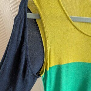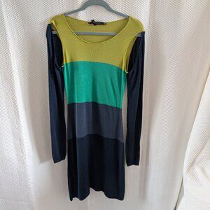 BCBGMAXAZRIA, BCBG, Max Azria, Nomia, Color Block, Cut Out, Midi Dress, Silk Blend, Rayon, Designer, Cocktail Dress, Party Dress, Wedding Guest, Size Small, Small Medium, jewel tone, knit