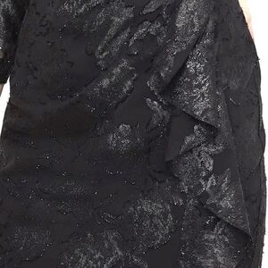BCBGMAXAZRIA One Shoulder Floral Faux Wrap Lace Mini Cocktail Dress BlacK 10